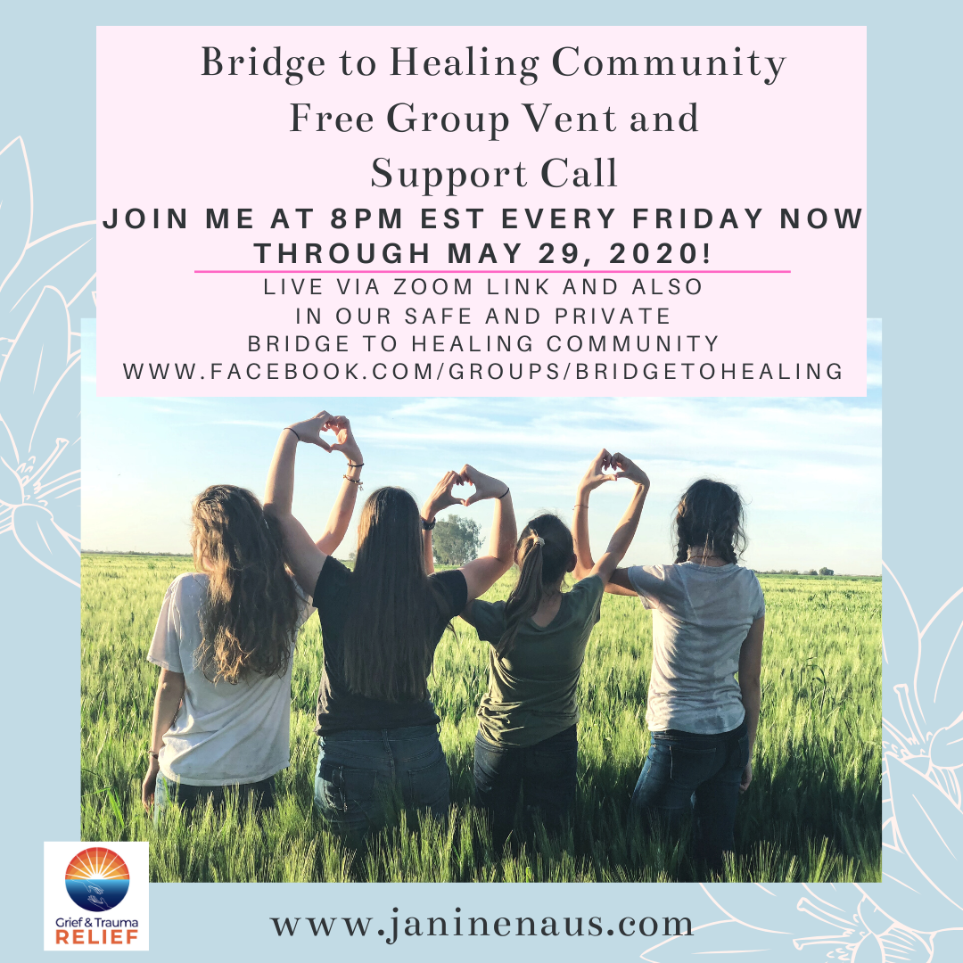 Come join me NOW through May 29, 2020 for support sessions and opportunity to chat about how you feel to help you get relief from difficult emotions.